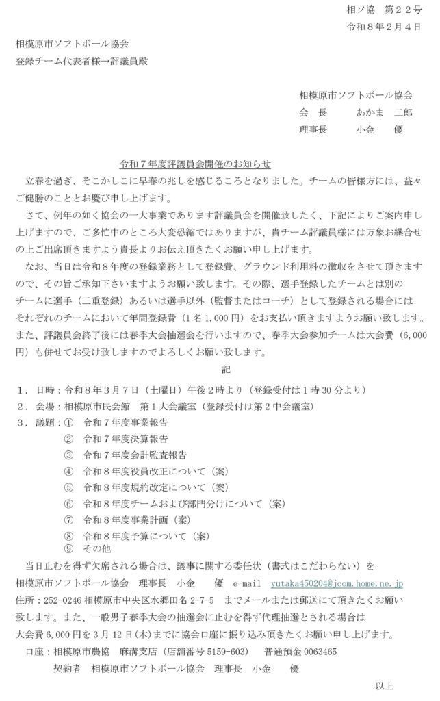 相模原市ソフトボール協会規約